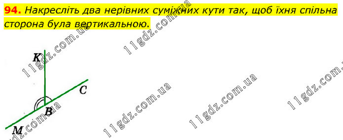 Накресліть два нерівних суміжних кyти так, щоб їхня спільна сторона була вертикальною.