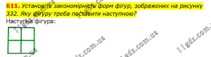 Установіть закономірність форм фігур, зображених на рисунку 332. Яку фігуру треба поставити наступною? Наступна фігура: