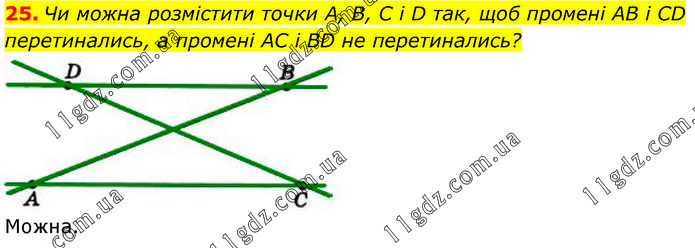 Чи можна розмістити точки А, В, C i D так, щоб промені AB і CD перетинались, а промені AC і BD не перетинались? Можна.