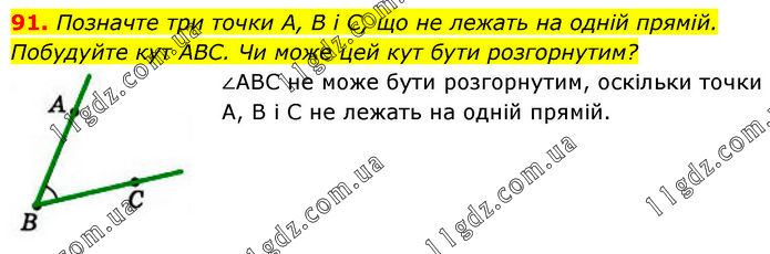 Позначте три точки А, В і С, що не лежать на одній прямій. Побудуйте кут ABC. Чи може цей кут бути розгорнутим? ∠АВС не може бути розгорнутим, оскільки точки А, В і С не лежать на одній прямій.