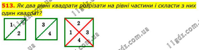 Як два рівні квадрати розрізати на рівні частини і скласти з них один квадрат?