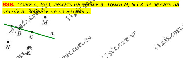 Точки A, B і C лежать на прямій a. Точки M, N і K не лежать на прямій a. Зобрази це на малюнку.