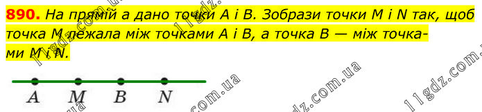 На прямій a дано точки A і B. Зобрази точки M і N так, щоб точка M лежала між точками A і B, а точка B — між точка- ми M і N.