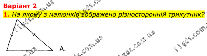 Варіант 2 1. На якому з малюнків зображено різносторонній трикутник? А.