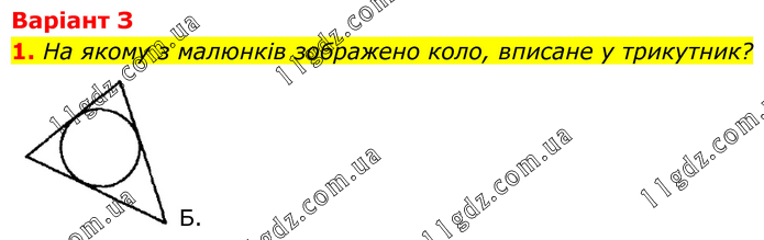 Варіант З 1. На якому з малюнків зображено коло, вписане у трикутник? Б.