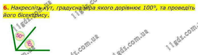 6. Накресліть кут, градусна міра якого дорівнює 100°, та проведіть його бісектрису.