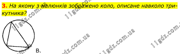 На якому з малюнків зображено коло, описане навколо три кутника? В.