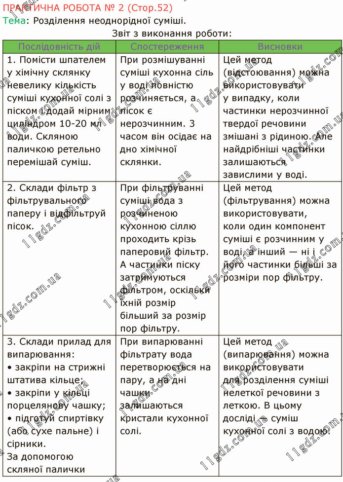 ПРАКТИЧНА РОБОТА № 2 (Стор.52) Тема: Розділення неоднорідної суміші.