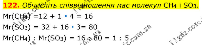 Обчисліть співвідношення мас молекул CH4 і SO3. Mr(CH4) =12 + 1 ∙ 4 = 16 Mr(SO3) = 32 + 16 ∙ 3= 80 Mr(CH4) : Mr(SO3) = 16 : 80 = 1 : 5