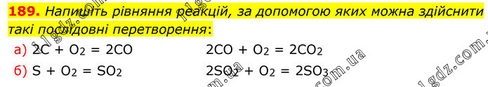 Напишіть рівняння реакцій, за допомогою яких можна здійснити такі послідовні перетворення: a) 2C + O2 = 2CO б) S + O2 = SO2 2CO + O2 = 2CO2 2SO2 + O2 = 2SO3