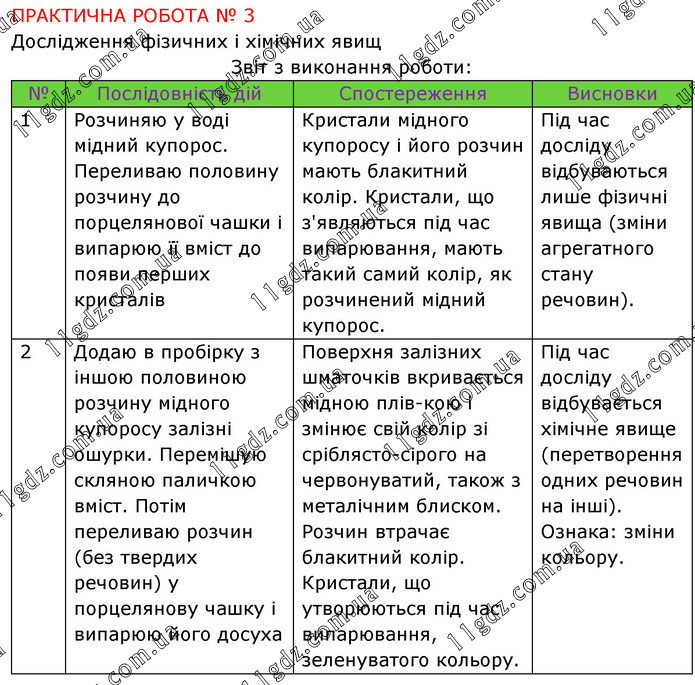 ПРАКТИЧНА РОБОТА № 3 Дослідження фізичних і хімічних явищ Звіт з виконання роботи: