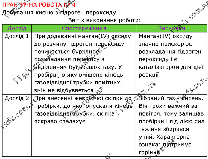ПРАКТИЧНА РОБОТА № 4 Добування кисню з гідроген пероксиду Звіт з виконання роботи:
