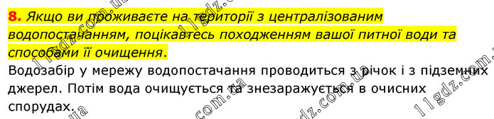 Якщо ви проживаєте на території з централізованим водопостачанням, поцікавтесь походженням вашої питної води та способами її очищення. Водозабір у мережу водопостачання проводиться з річок і з підземних джерел. Потім вода очищується та знезаражується в очисних спорудах.