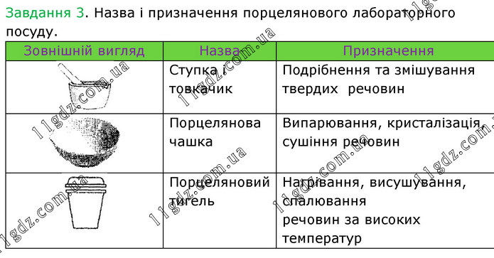 Завдання 3. Назва і призначення порцелянового лабораторного посуду.