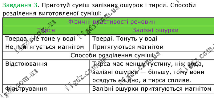 Завдання 3. Приготуй суміш залізних ошурок і тирси. Способи розділення виготовленої суміші:
