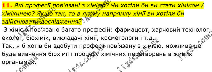 Які професії пов’язані з хімією? Чи хотіли би ви стати хіміком / хімікинею? Якщо так, то в якому напрямку хімії ви хотіли би здійснювати дослідження? З хімією пов’язано багато професій: фармацевт, харчовий технолог, еколог, біохімік, викладачі хімії, косметологи і т.д. Так, я б хотів би здобути професії пов’язану з хімією, можливо це буде вивчення біохімії і процесу хімічних перетворень в живих організмах.