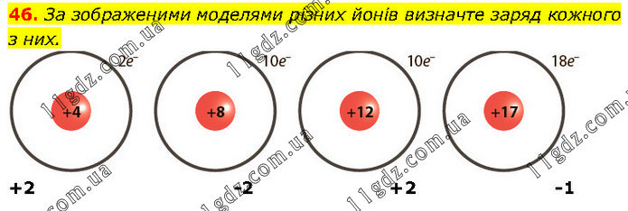 За зображеними моделями різних йонів визначте заряд кожного з них.