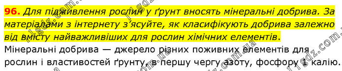 Для підживлення рослин у ґрунт вносять мінеральні добрива. За матеріалами з інтернету з’ясуйте, як класифікують добрива залежно від вмісту найважливіших для рослин хімічних елементів. Мінеральні добрива — джерело різних поживних елементів для рослин і властивостей ґрунту, в першу чергу азоту, фосфору 1 калію.