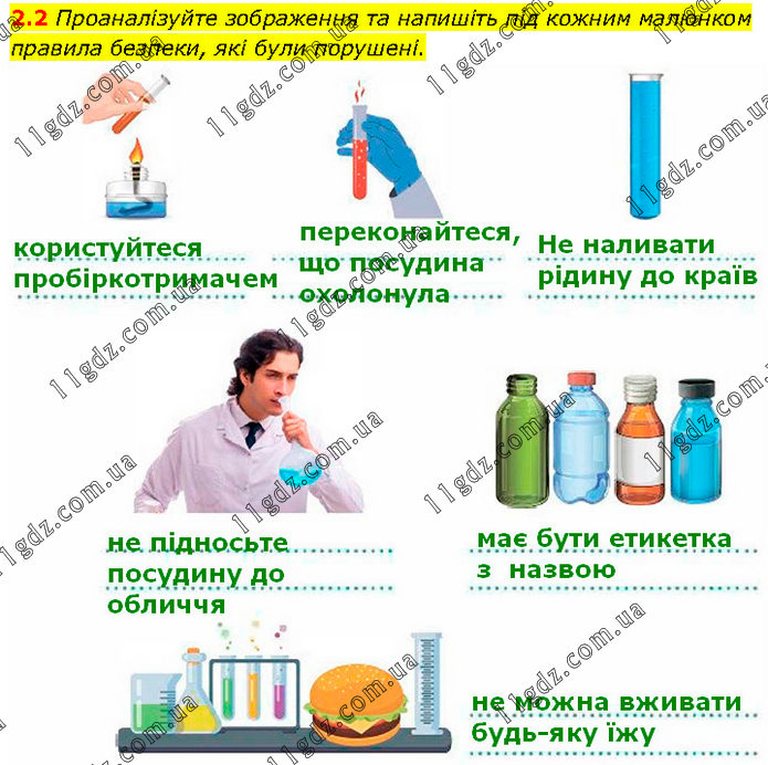 Проаналізуйте зображення та напишіть під кожним малюнком правила безпеки, які були порушені.