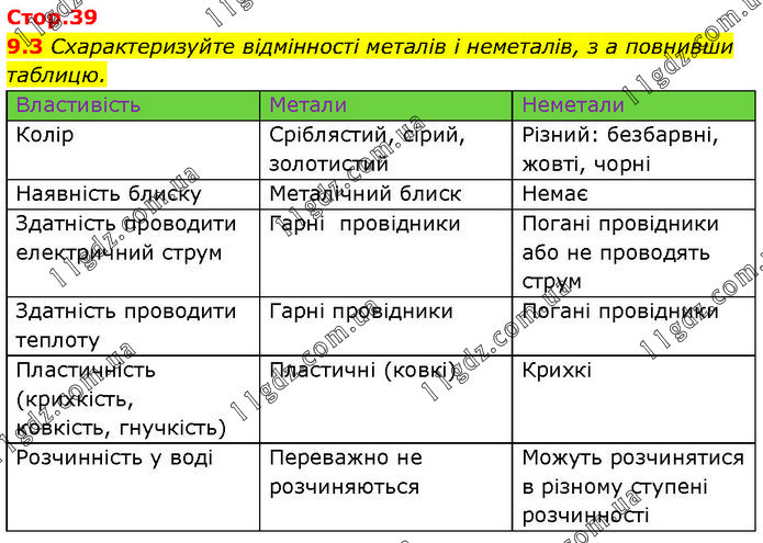 Схарактеризуйте відмінності металів і неметалів, з а повнивши таблицю.