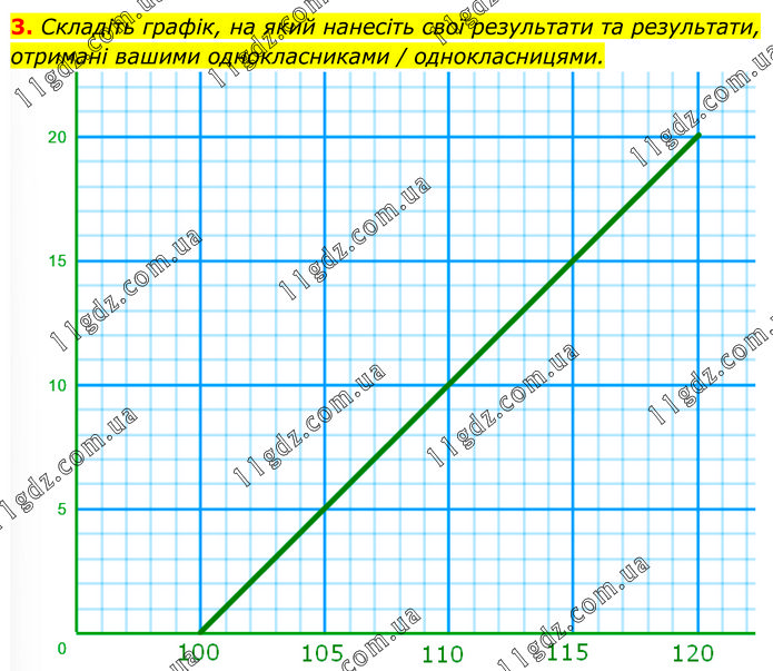 Складіть графік, на який нанесіть свої результати та результати, отримані вашими однокласниками / однокласницями.