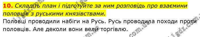 Складіть план і підготуйте за ним розповідь про взаємини половців з руськими князівствами. Половці проводили набіги на Русь. Русь проводила походи проти половців. Але деколи вони вели торгівлю.