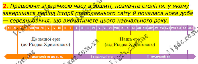 Працюючи зі стрічкою часу в зошиті, позначте століття, у якому завершився період історії стародавнього світу й почалася нова доба — середньовіччя, що вивчатимете цього навчального року.