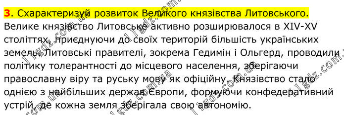 Схарактеризуй розвиток Великого князівства Литовського. Велике князівство Литовське активно розширювалося в XIV-XV століттях, приєднуючи до своїх територій більшість українських земель. Литовські правителі, зокрема Гедимін і Ольгерд, проводили політику толерантності до місцевого населення, зберігаючи православну віру та руську мову як офіційну. Князівство стало однією з найбільших держав Європи, формуючи конфедеративний устрій, де кожна земля зберігала свою автономію.