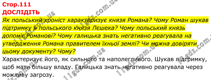 ДОСЛІДІТЬ Як польський хроніст характеризує князя Романа? Чому Роман шукав підтримку в польського князя Лєшека? Чому польський князь допоміг Романові? Чому галицька знать негативно реагувала на утвердження Романа правителем їхньої землі? Чи можна довіряти цьому документу? Чому? Характеризує його, як сильного та наполегливого. Шукав підтримку, щоб мати більшу владу. Галицька знать негативно реагувала через можливу загрозу.