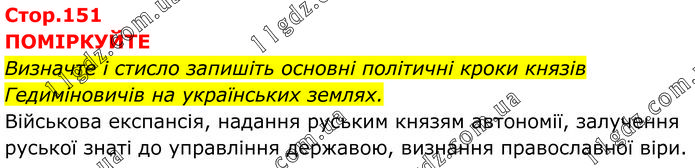 ПОМІРКУЙТЕ Визначте і стисло запишіть основні політичні кроки князів Гедиміновичів на українських землях. Військова експансія, надання руським князям автономії, залучення руської знаті до управління державою, визнання православної віри.