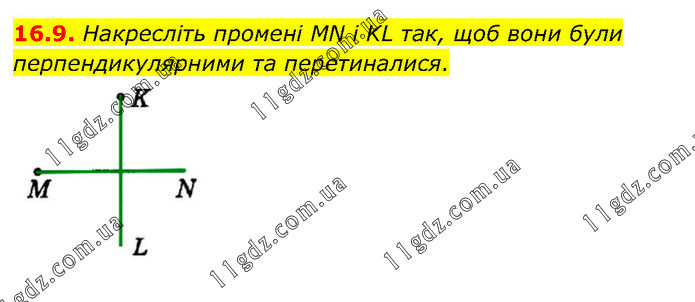 Накресліть промені MN і KL так, щоб вони були перпендикулярними та перетиналися.