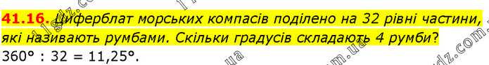 Циферблат морських компасів поділено на 32 рівні частини, які називають румбами. Скільки градусів складають 4 румби? 360° : 32 = 11,25°.