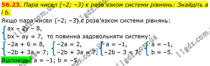 Пара чисел (–2; –3) є розв’язком системи рівнянь: Знайдіть а і b.