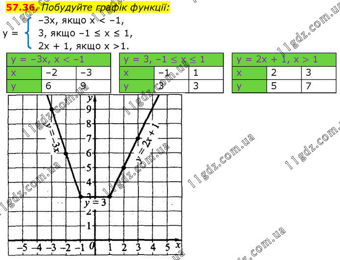 Побудуйте графік функції: –Зх, якщо х < –1, у = 3, якщо –1 ≤ х ≤ 1, 2х + 1, якщо х >1.