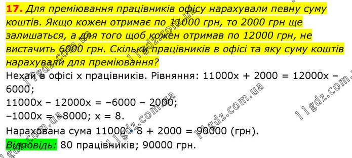 На двох тарілках було по 60 вареників. Після того як з першої тарілки з’їли утричі більше вареників, ніж з другої, на ній залишилося вдвічі менше вареників, ніж на другій. По скільки вареників залишилося на кожній тарілці? Нехай з, другої тарілки з’їли х вареників, тоді з першої з’їли Зх вареників. Після цього у першій тарілці залишилося (60 – Зх) вареників, а у другій — (60 – х) вареників. Рівняння: 2(60 – Зх) = = (60 – х); 120 – 6х = 60 – х; –6х + х = 60 – 120; –5х = –60; х = 12. У першій тарілці залишилося 60 – 3 ∙ 12 = 24 (вареники), а у другій — 60 – 12 = 48 (вареників). Відповідь: 24 вареники і 48 вареників.
