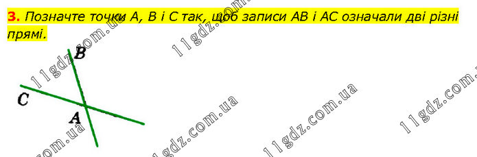 Позначте точки А, В і C так, щоб записи AB і AC означали дві різні прямі.