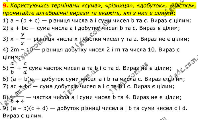 1 ЧАСТИНА - 1. Алгебра"iчнi вирази » 9