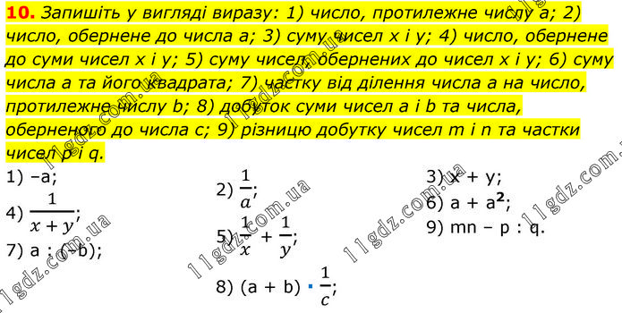 1 ЧАСТИНА - 1. Алгебра"iчнi вирази » 10