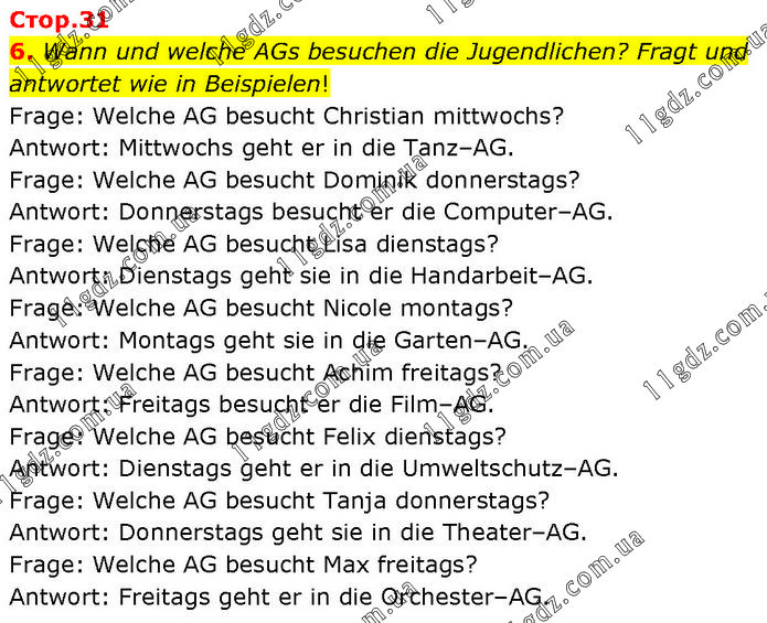 Lektion 2 Aktiv nach der Schule » Стр.31 (6)