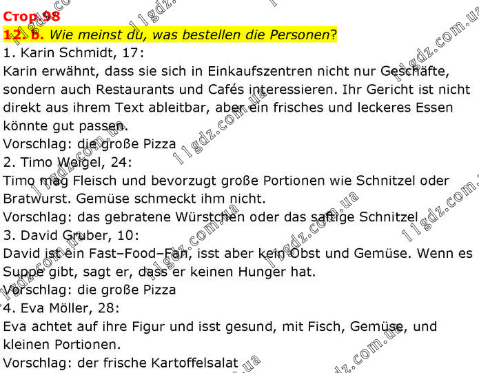 Lektion 5 Was isst du gern? » Стр.98 (12b)