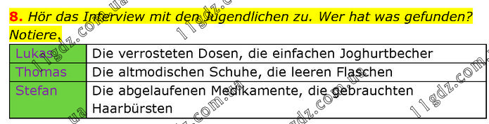 Hör das Interview mit den Jugendlichen zu. Wer hat was gefunden? Notiere.
