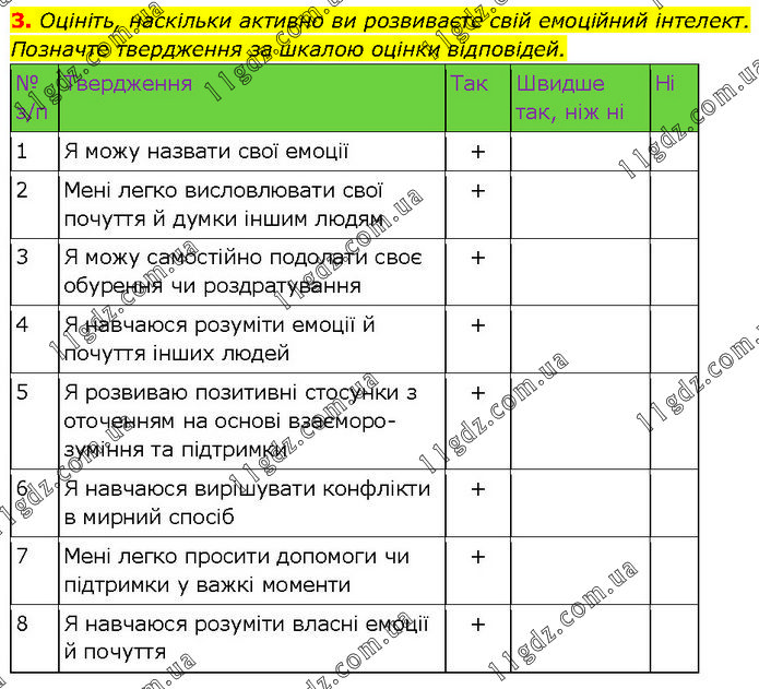 Оцініть, наскільки активно ви розвиваєте свій емоційний інтелект. Позначте твердження за шкалою оцінки відповідей.