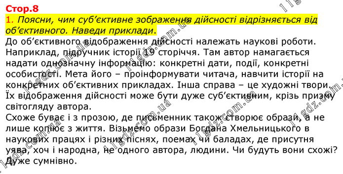 1. Поясни, чим суб’єктивне зображення дійсності відрізняється від об’єктивного. Наведи приклади.