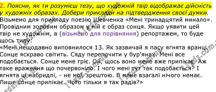 2. Поясни, як ти розумієш тезу, що художній твір відображає дійсність у художніх образах. Добери приклади на підтвердження своєї думки.