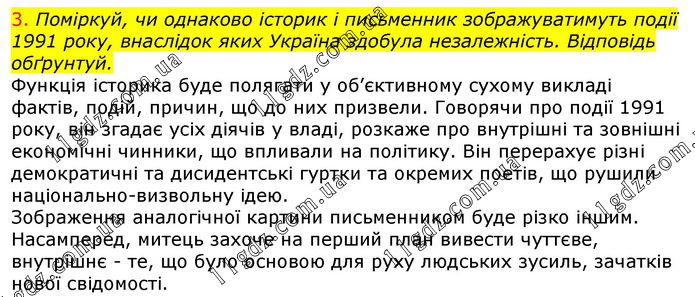 3. Поміркуй, чи однаково історик і письменник зображуватимуть події 1991 року, внаслідок яких Україна здобула незалежність. Відповідь обґрунтуй.
