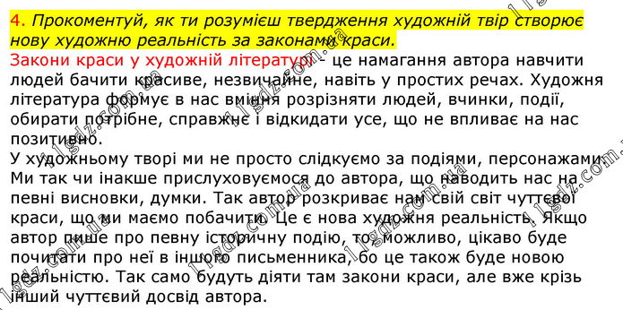 4. Прокоментуй, як ти розумієш твердження художній твір створює нову художню реальність за законами краси.