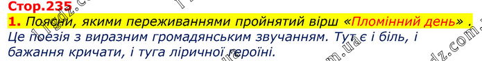 Поясни, якими переживаннями пройнятий вірш «Пломінний день»