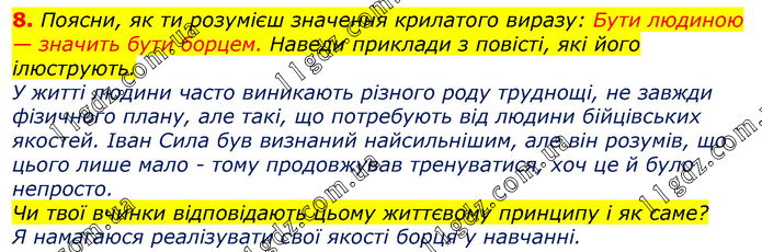 Поясни, як ти розумієш значення крилатого виразу: Бути людиною — значить бути борцем. Наведи приклади з повісті, які його ілюструють. Чи твої вчинки відповідають цьому життєвому принципу і як саме? «Іван Сила»