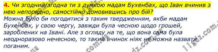 Чи згодний/згодна ти з думкою мадам Бухенбах, що Іван вчинив з нею непорядно, самостійно домовившись про бій?