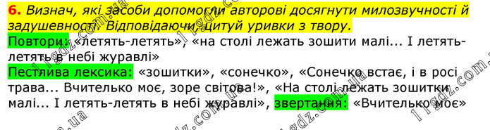 Визнач, які засоби допомогли авторові досягнути милозвучності й задушевності. Відповідаючи, цитуй уривки з твору. «Вчителька»